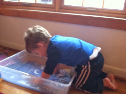 Today, he lays on the floor and says "Mama, have poop!" So we tromp up the stairs, I get him on the changing table only to find there is no poop.